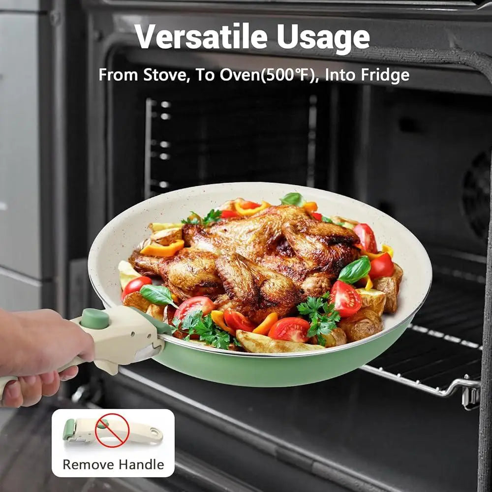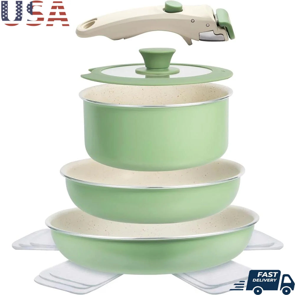 Cook with ease using this 8-piece nonstick induction cookware set. Featuring granite pots and pans with a removable handle, it’s stackable for space-saving storage and easy to clean. Perfect for modern kitchens and everyday cooking.