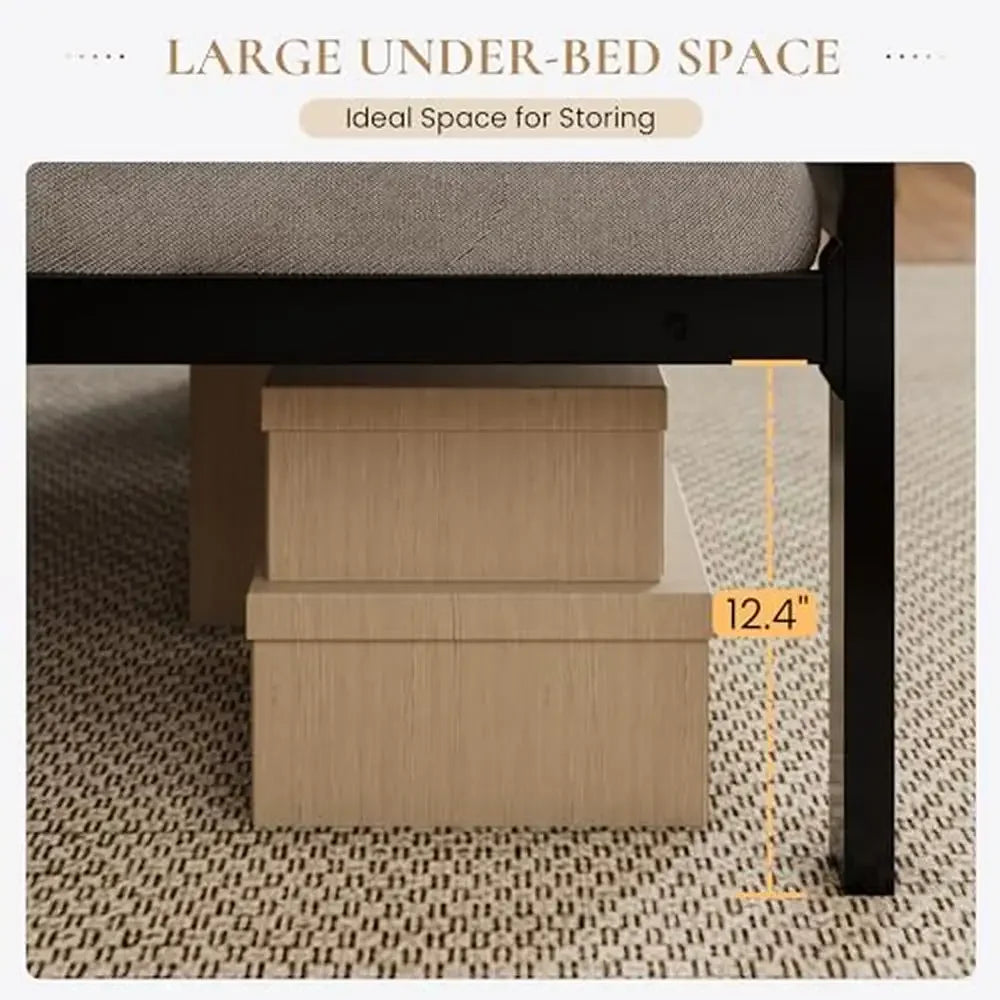 Transform your bedroom with this stylish twin metal platform bed. Designed with a plush tufted headboard and 17 heavy-duty slats, it offers elegance, comfort, and lasting support—all without needing a box spring.