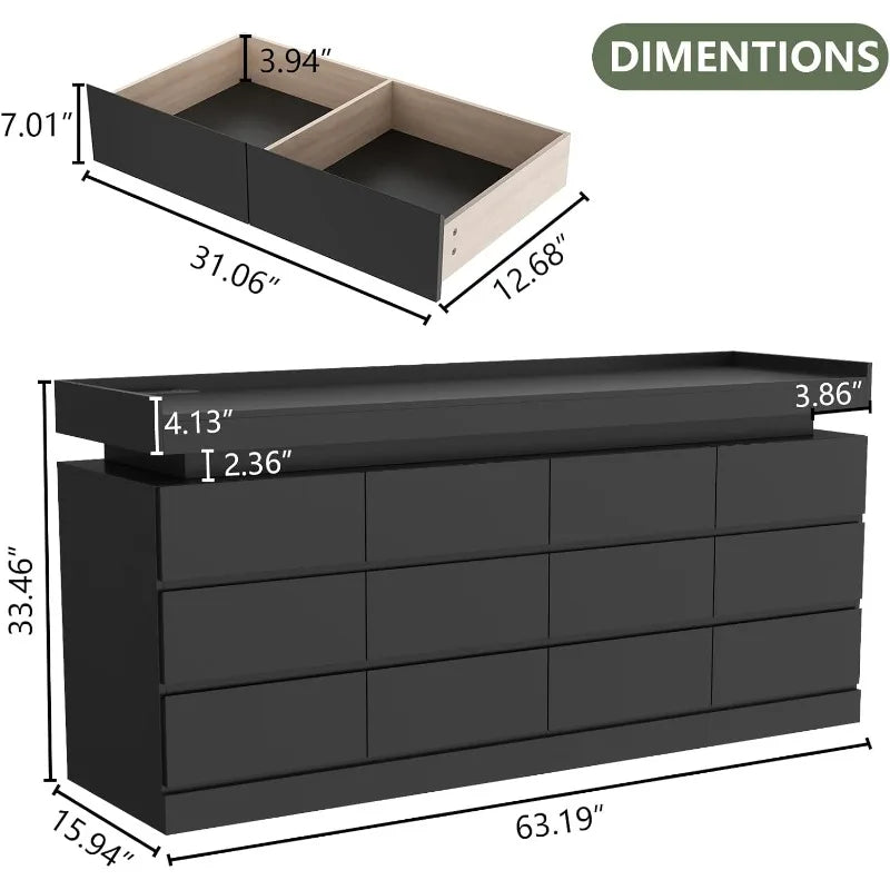 Mid-Century Modern 4 Drawer Wooden Dresser – Boho Storage Cabinet