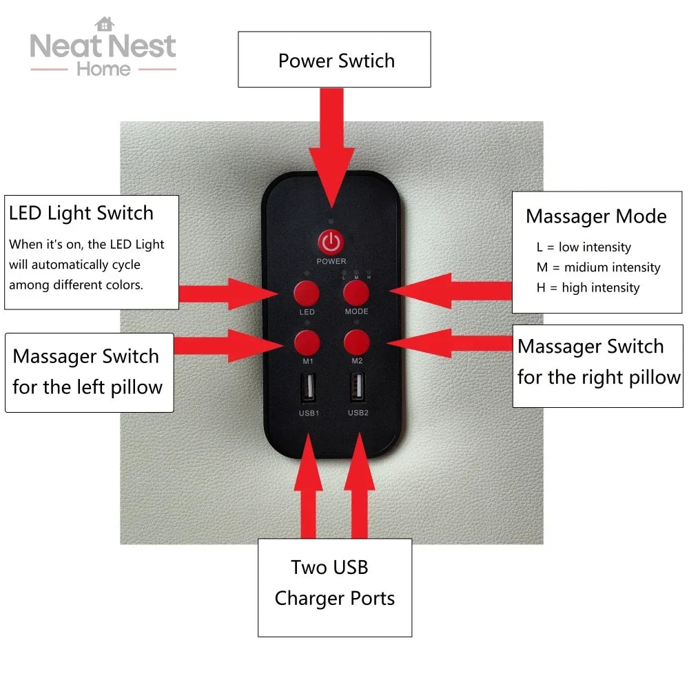 Queen-size faux leather upholstered platform bed with LED lighting, Bluetooth music control, and a smart massage function. A modern, high-tech design that blends comfort, style, and innovation.