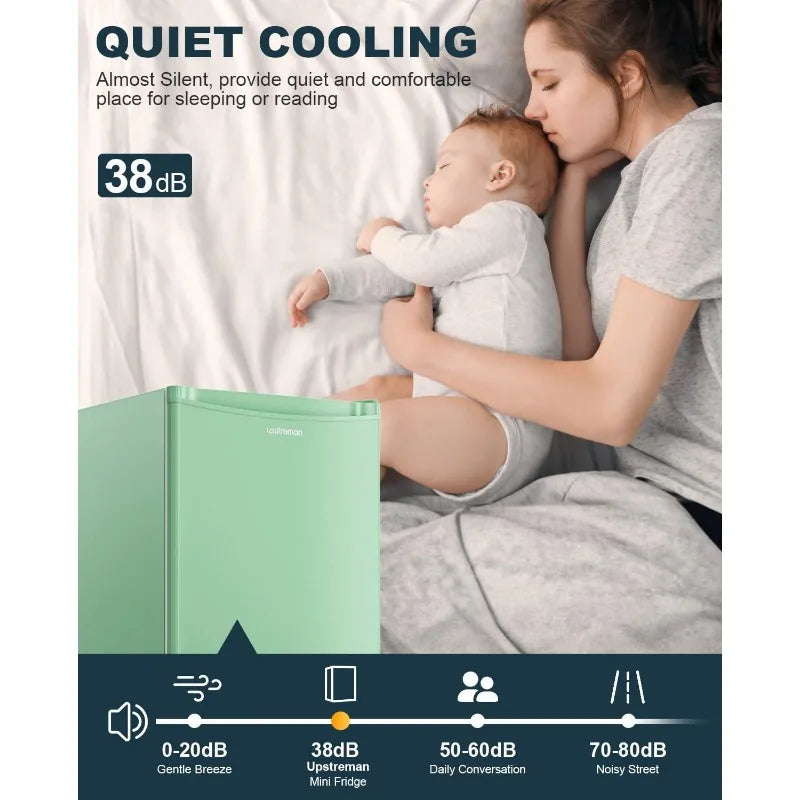 The Upstreman 3.2 Cu.Ft mini fridge with freezer is a compact, energy-efficient solution for small spaces. Featuring a single-door design, adjustable thermostat, and built-in freezer, it’s perfect for dorms, bedrooms, offices, or apartments where space and convenience matter.